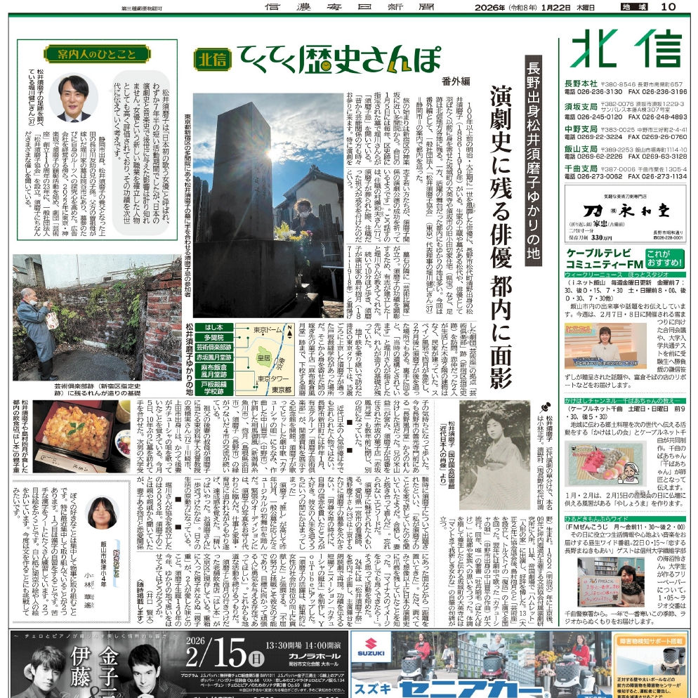 役者・松井須磨子の歩み、学ぶ催し 上田市の養家子孫、都内で開催(2022/10/17)