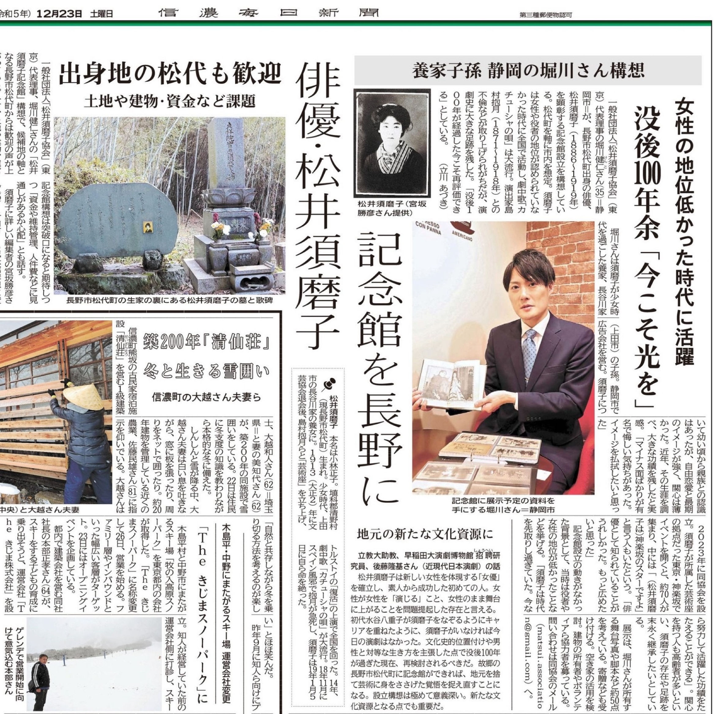 俳優・松井須磨子、記念館を故郷長野に 没後100年余「今こそ光を」(2023/12/23)
